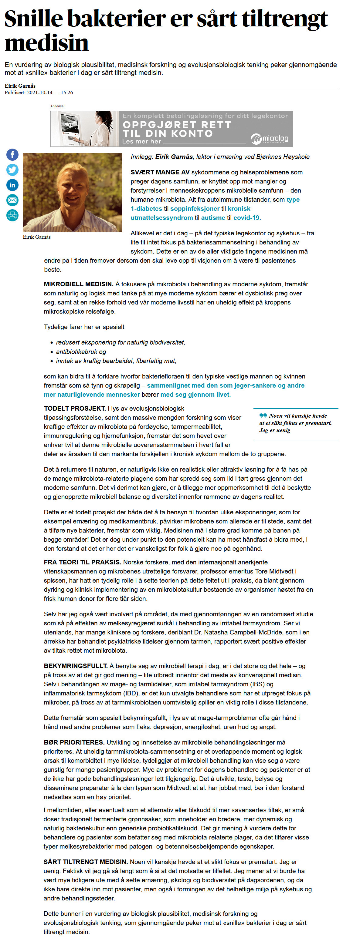 Om mikrobiota og COVID-19