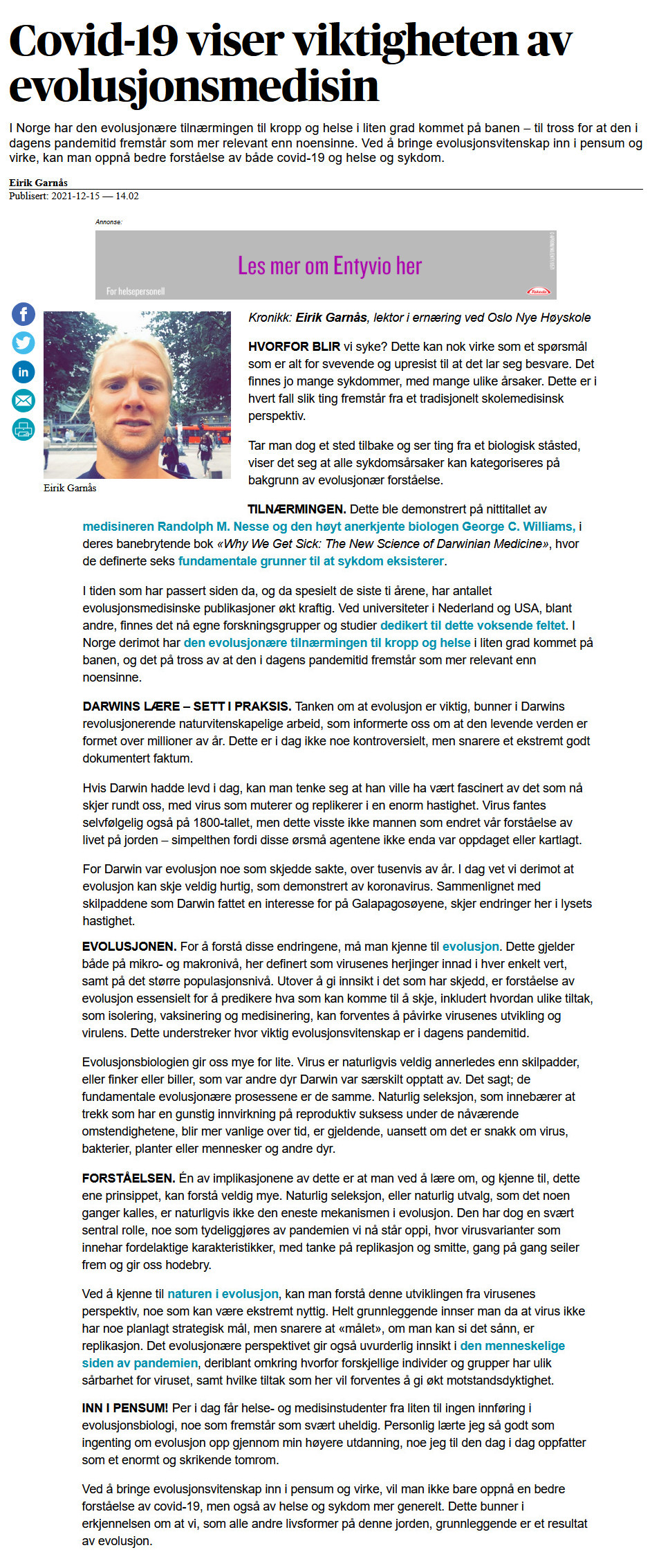 Om evolusjon og COVID-19