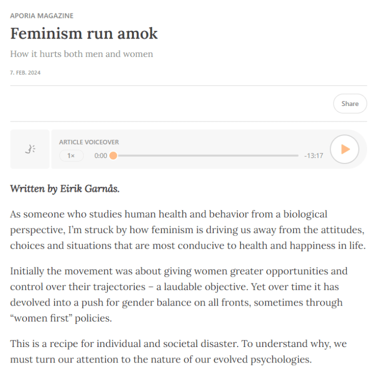 Om farene med moderne feministideologi